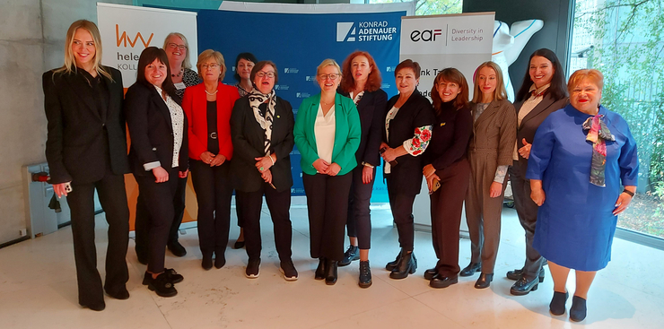 Natalya Deliyeva, die bei den letzten Wahlen für das Bürgermeisteramt in Odessa kandidiert hatte, führte als positives Beispiel die von ihr gegründete Frauenorganisation Diya an. Eine Organisation sei nur so stark wie die Persönlichkeiten, die darin arbeiten. „Die Frauen in dieser Organisation sind positiv eingestellt und vereint. Es sind sehr starke Frauen, die in der Ukraine Führungspositionen haben. Sie können die öffentliche Meinung verändern und zeigen, dass Frauen alles können.“ Mitstreiterinnen von Diya hätten später auch für Ämter kandidiert und hätten die Wahlen gewonnen. Zivilgesellschaftliches Engagement, so Natalya Deliyeva, bereite also auch auf ein politisches Amt vor. Diese Erfahrung teilen andere Delegationsteilnehmerinnen. So wurde Liliia Gyrenko, Vorsitzend von „Women plus“, von ihrer Organisation für die Regionalwahlen aufgestellt. Inzwischen ist sie Abgeordnete des Regionalrats von Dnipropetrowsk und vertritt dort die Anliegen von Frauen. Auch in anderen Regionen hätten sich diese Netzwerke nach dem Überfall Russlands verstärkt. „Sie sind zwar nicht immer sichtbar, aber immer effektiv“, so Liliya Kislitsyna, Vorsitzende der Frauenorganisation Smarta.