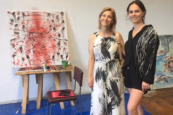 Gerade lebt und arbeitet eine Stipendiatin aus der Ukraine in einem der Gaststudios. Die 32-jährige Daria Gabruk kommt aus Zhytomyr im Norden der Ukraine, unweit der Grenze mit Belarus. Für vier Wochen ist sie auf Plüschow eingeladen, um sich von dem Kriegsstress etwas zu erholen und ihre Erlebnisse und Ängste künstlerisch zu verarbeiten. Schnell kommt sie ins Erzählen und beschreibt am Beispiel ihrer Bilder ihr Leben und ihre Arbeit zuhause und wie der Krieg ihre äußere und innere Welt verändert hat. Im Schloss sind heute auch zwei junge ukrainische Musikerinnen zu Besuch. Sie sind seit dem Frühjahr in einem nahegelegenen Ort untergebracht und hoffen, dass sie in Deutschland ihre künstlerische Ausbildung fortsetzen können. Miro Zahra unterstützt sie nach Kräften und plant mit den beiden ein Konzert mit ukrainischen, deutschen und tschechischen Volksliedern. Eines ihrer Lieblingslieder trägt die gebürtige Tschechin zusammen mit den beiden Geigerinnen vor. Ein Ständchen für die Gästinnen auf der Veranda des Schlosses.