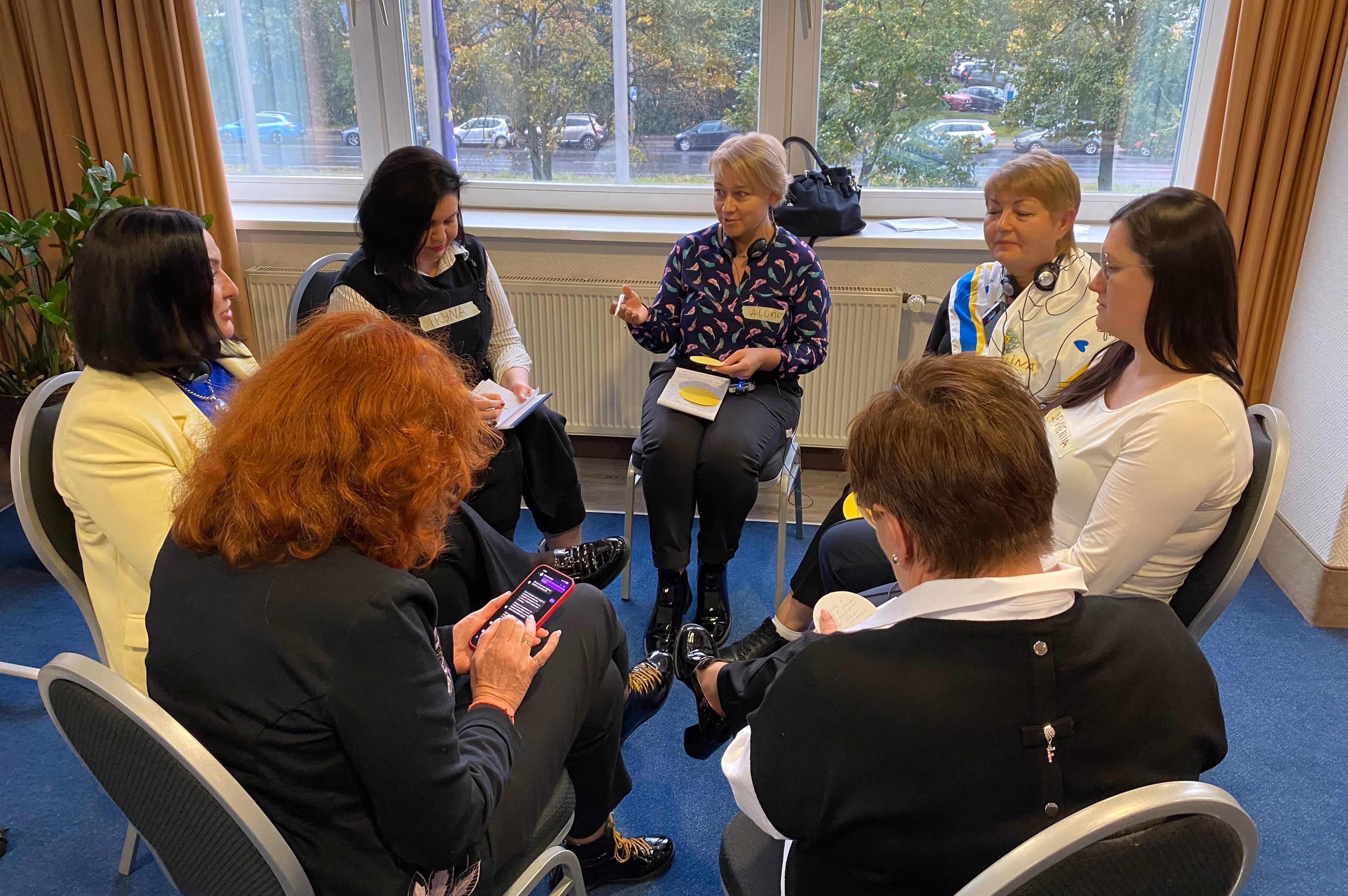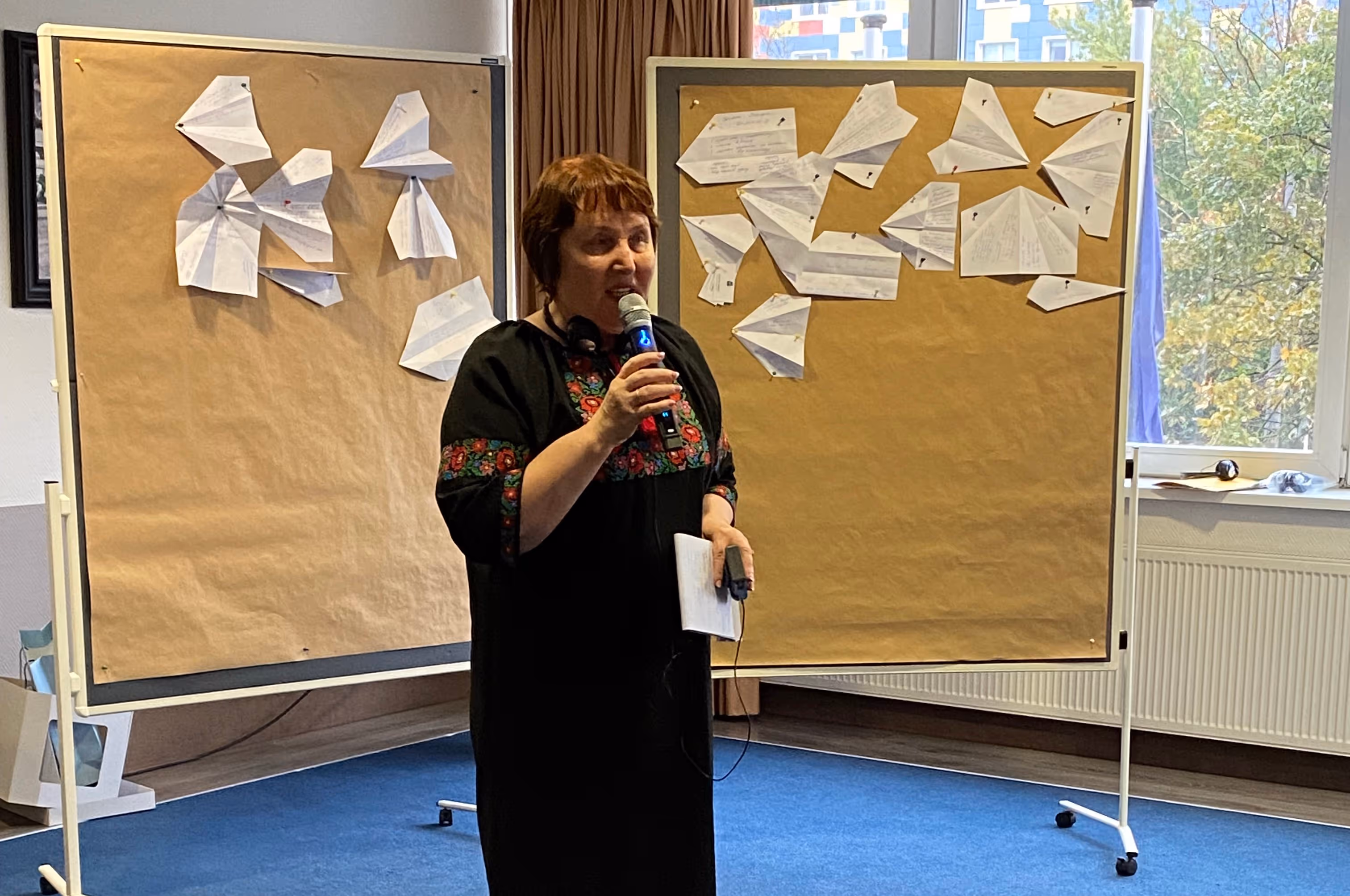 Von diesen „Heimatfrontkämpferinnen“ hatten sich zwanzig aus verschiedenen Regionen der Ukraine auf den Weg nach Berlin gemacht: Bürgermeisterinnen größerer und kleinerer Gemeinden, ihre Stellvertreterinnen, Leiterinnen und Mitarbeiterinnen aus Verwaltungseinheiten, Mitglieder von Gemeinde- und Regionalräten, Vertreterinnen zivilgesellschaftlicher Frauenorganisationen.
