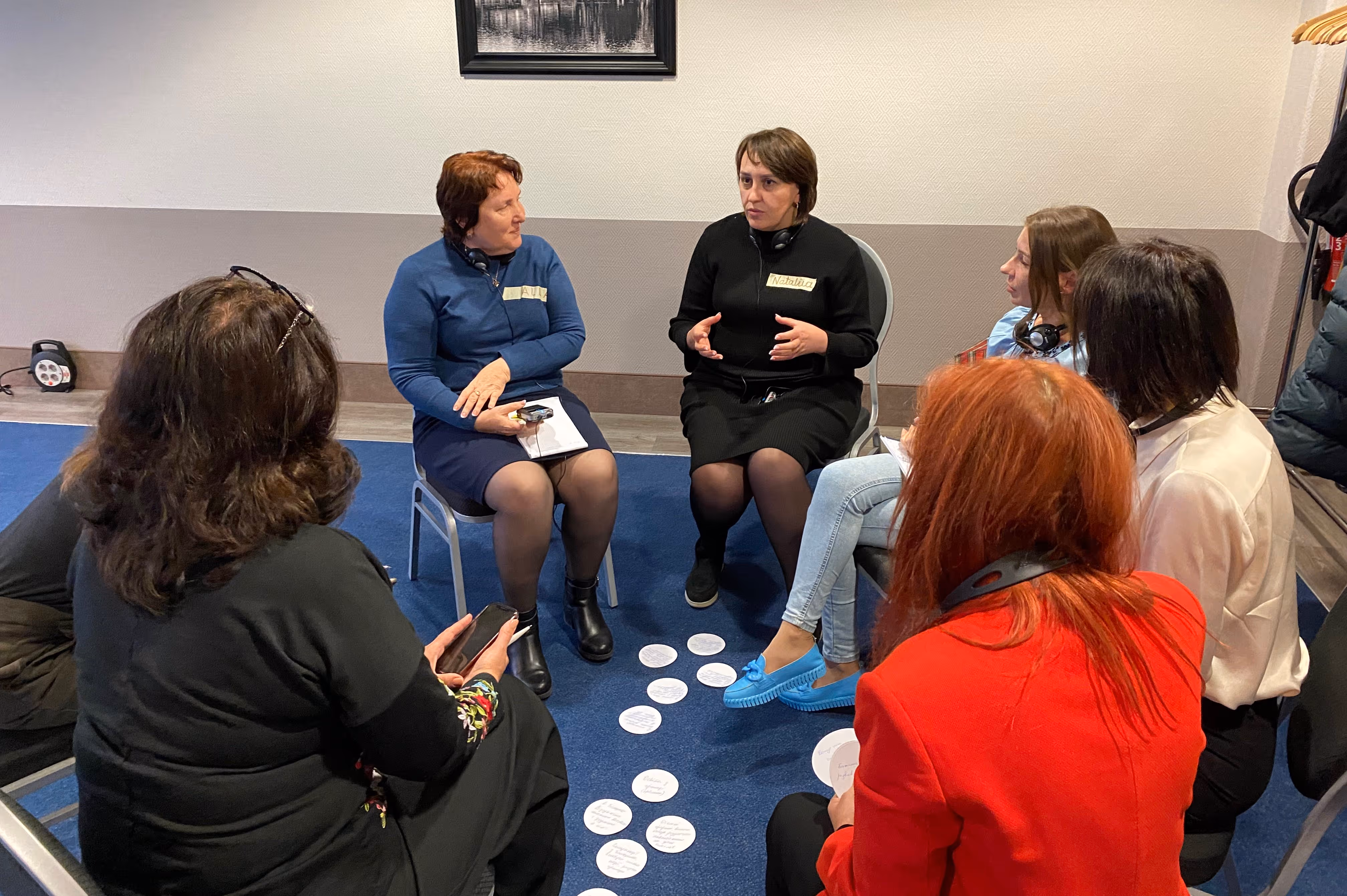 „Jeder kommt auf die Welt, um diese besser zu machen.“ Dieses Credo teilte Ludmyla Prokopechko, Bürgermeisterin der Gemeinde Dobroslav im Oblast (Verwaltungsbezirk) Odessa, mit der Runde. Sie ist stolz darauf, dass sie mit über neunzig Prozent der Stimmen in ihr Amt gewählt wurde und eine unangefochtene kommunale Führungsfrau ist. Yevheniia Bardiak, Mitglied im Regionalrat des Oblast Ivano-Frankivsk, plädierte dafür, die Lebenszeit in „etwas Großes“ zu investieren. Doch stellte sie fest, dass „unsere Frauen in der Ukraine viel zu viel arbeiten.“ Halyna Biletska, Bürgermeisterin der Gemeinde Andrushivka im Oblast Schytomyr, berichtete stolz, dass sie bereits dreimal hintereinander in ihrem Amt bestätigt worden sei. Ihre Arbeit sei schwer und verantwortungsvoll, besonders jetzt im Krieg. Doch „Bescheidenheit und Stillschweigen sind unsere größten Feinde.“ Natalya Deliyeva aus Odessa, Mitgründerin und Vorsitzende der Frauenorganisation „Diya“ beschrieb, wie sich ihre Auffassung von Macht verändert hat. Während sie früher damit einen Gegenstand wie eine Krone oder ein Zepter assoziiert habe, sei Macht für sie heute die „Fähigkeit, zu handeln, die Möglichkeit, etwa zu bewegen“.